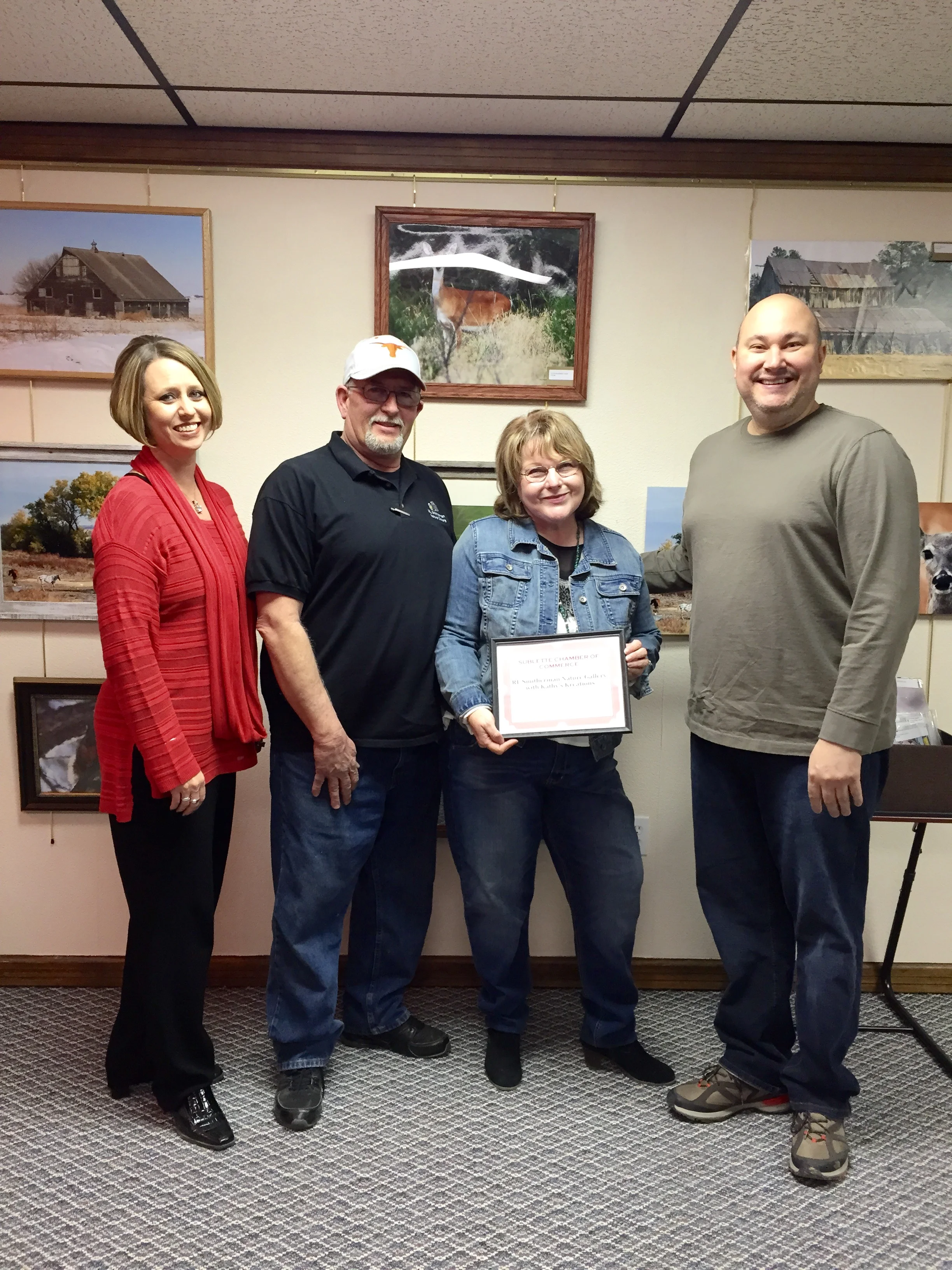 The Sublette Chamber of Commerce welcomed RL Smitherman Nature Gallery and Kathy's Kreations to downtown with a ribbon cutting on February 6, 2015. Owners, Bob and Kathy Smitherman have been building a fan base while featuring their creative work around the area at trade shows. They are excited about having a permanent gallery right here in downtown Sublette at 102 S. Inman. Stop in for an uplifting experience on Thursday/Friday from 1- 6pm, or Saturday 11am - 5pm. You can also find them on facebook or RLSmithermanNatureGallery.com